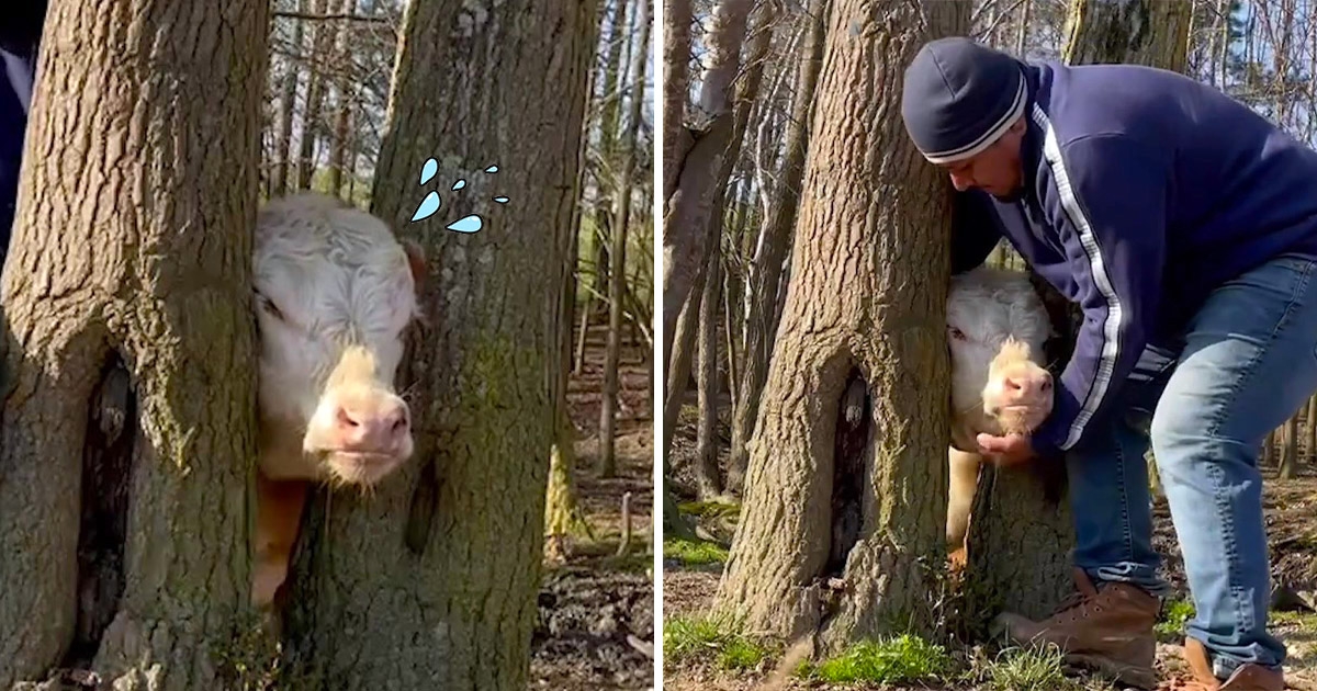 小牛「頭卡樹木」臉臉硬擠 正義哥發現秒上前:蜀叔來救!