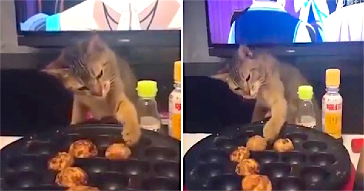「喵掌快手翻章魚燒」想偷吃 貓主子太熟練反變老闆…網友笑:給我來一份!