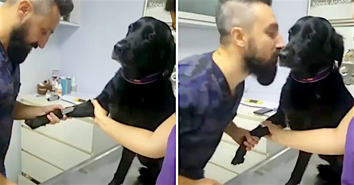 黑狗看診「自己跳上台」伸手手 全程男子漢忍淚:偶不會哭…QQ