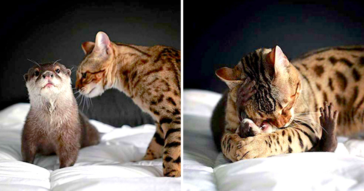 「水獺貓咪養一起」卻混很好 日常抱抱超療癒:我們麻吉啦~