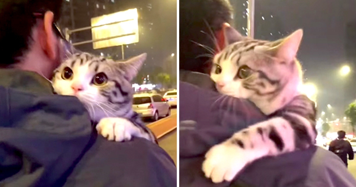 這隻才是正宮吧? 大眼喵乖巧趴主人肩頭 伸爪爪擁抱:最愛把拔❤