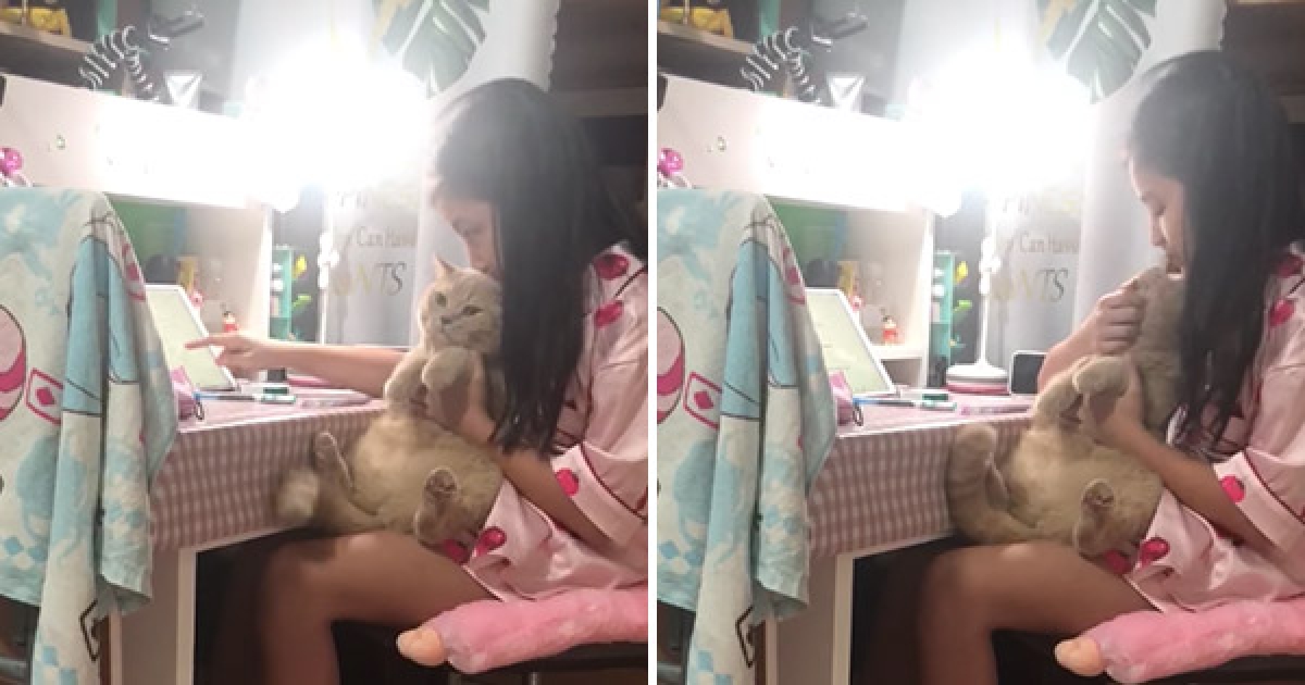 女兒「吸貓成癮」作業不寫了 老媽拍下證據引網笑:果然是專業貓奴