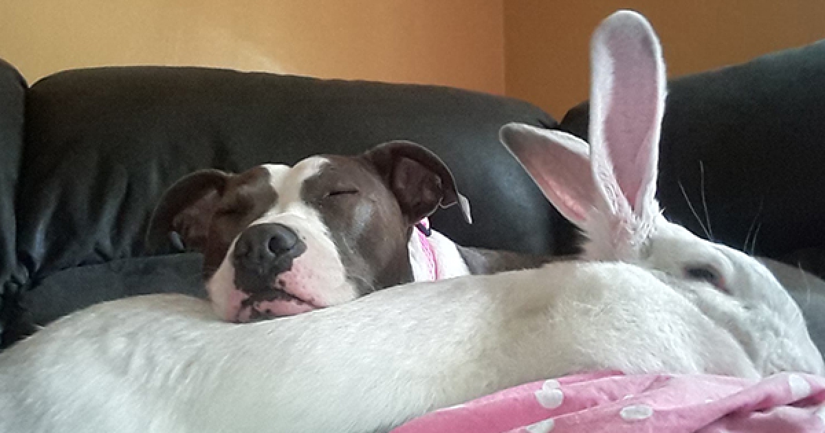 比特犬看到兔兔秒被融化 馬麻爆料:牠最喜歡抱著兔兔睡覺覺~