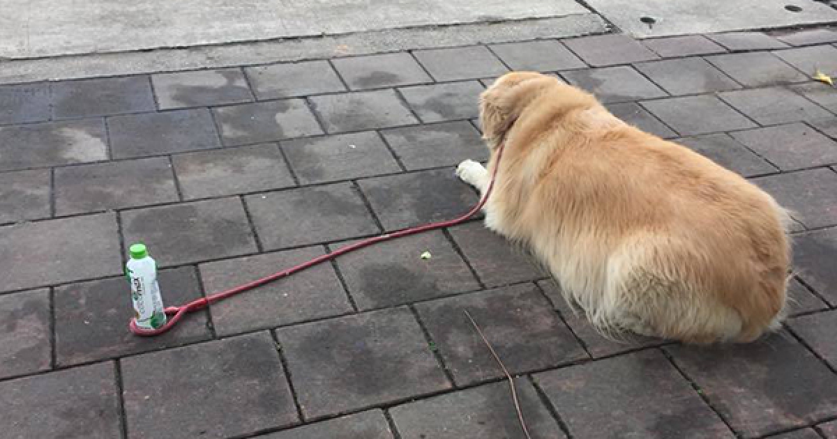 神招「放水瓶拴愛犬」去上廁所 主人回來一看:金金不會讓人失望