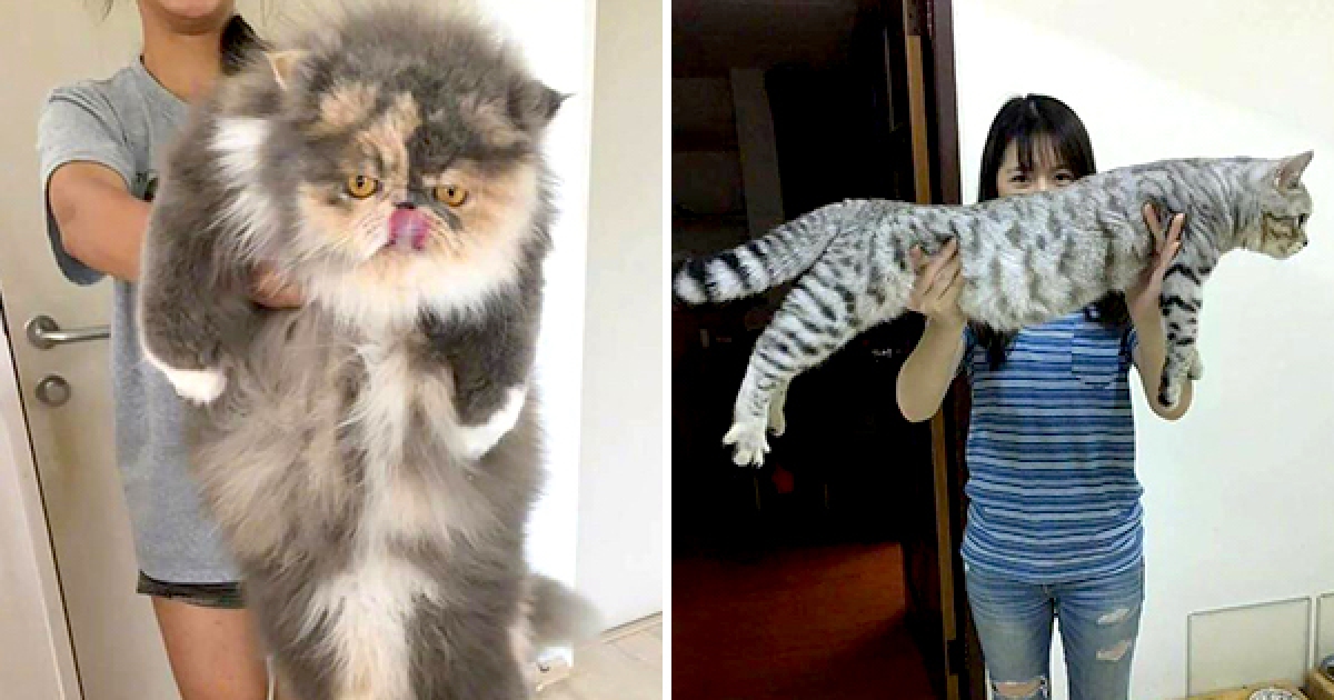 朕不是胖只是骨架大! 「喵界巨人」很考驗奴才手勁:差點抱不動啦~