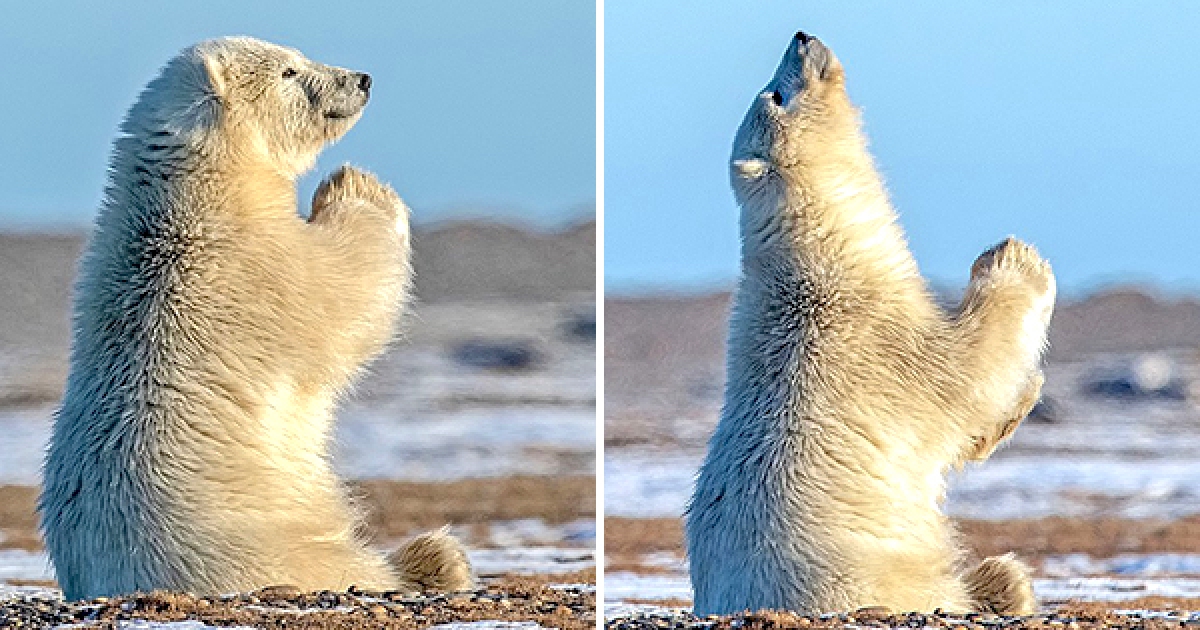 全球暖化讓冬天消失了 小北極熊坐地「心碎禱告」:多結點冰吧…