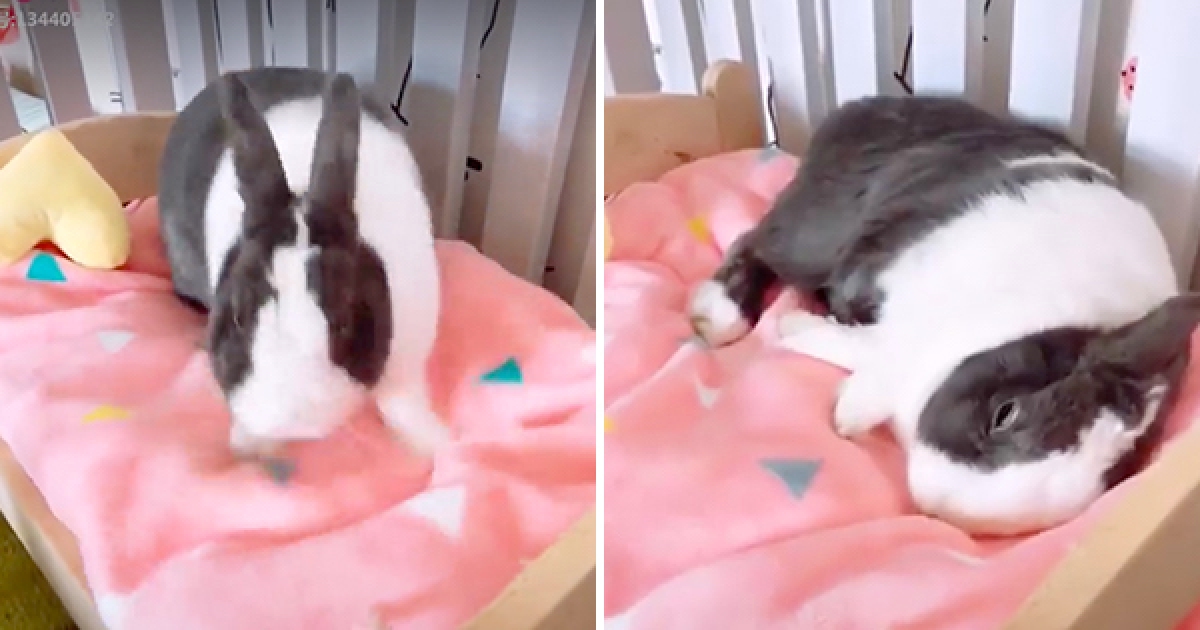 萌兔「腳腳狂蹭」鋪小床 一鋪完秒躺:我睡啦~zZ