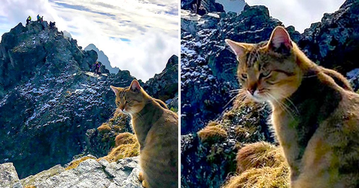 登山客攻2500公尺高峰被搶先 虎斑喵霸氣立山頂:人類太弱了~