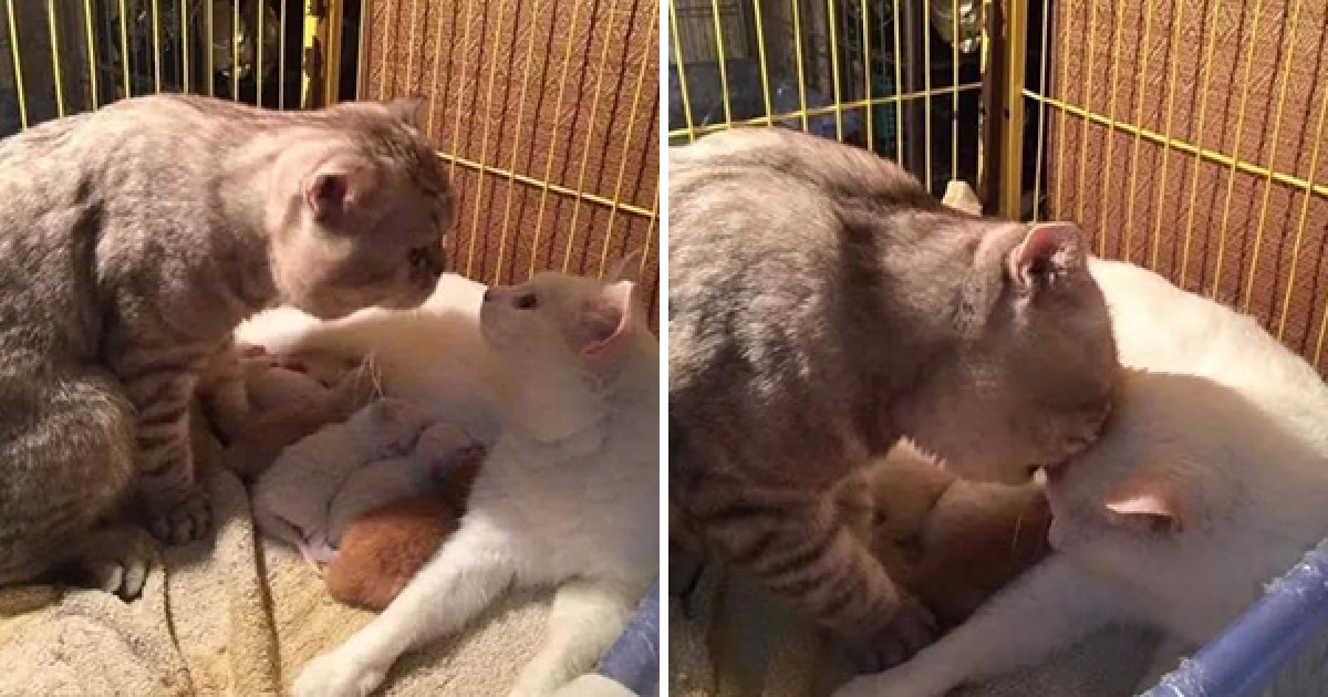 閃爆了~ 公貓心疼老婆生產 貼身守護幫舔毛:辛苦你了