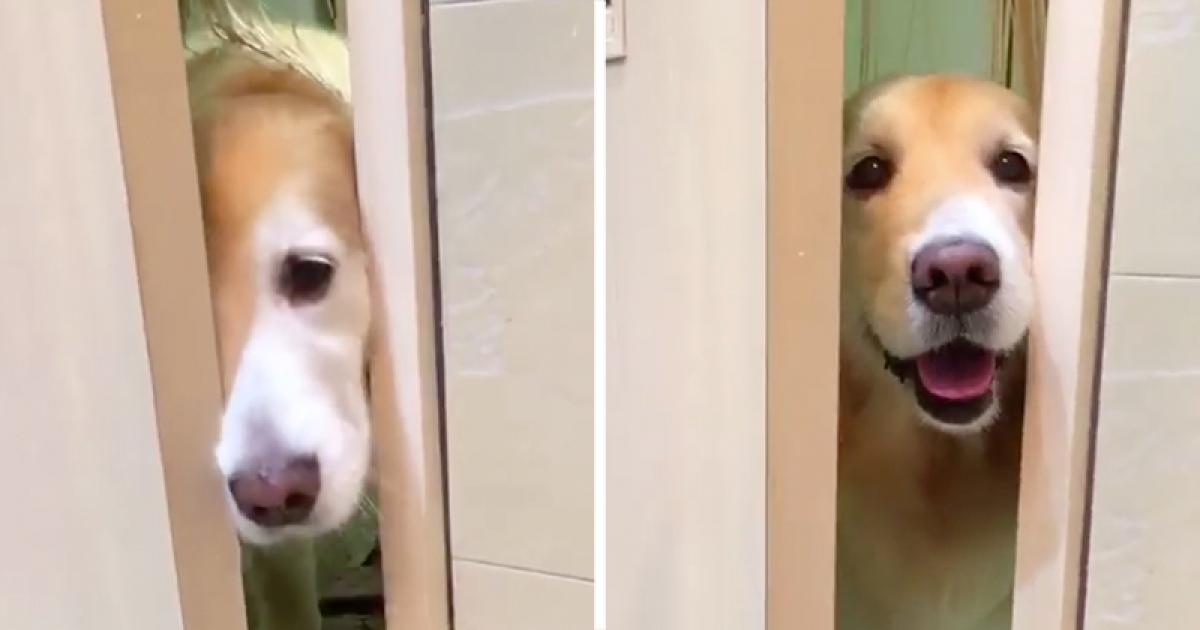 金金擔心把拔! 牠笑著探頭8次 確認洗澡中的主人沒危險