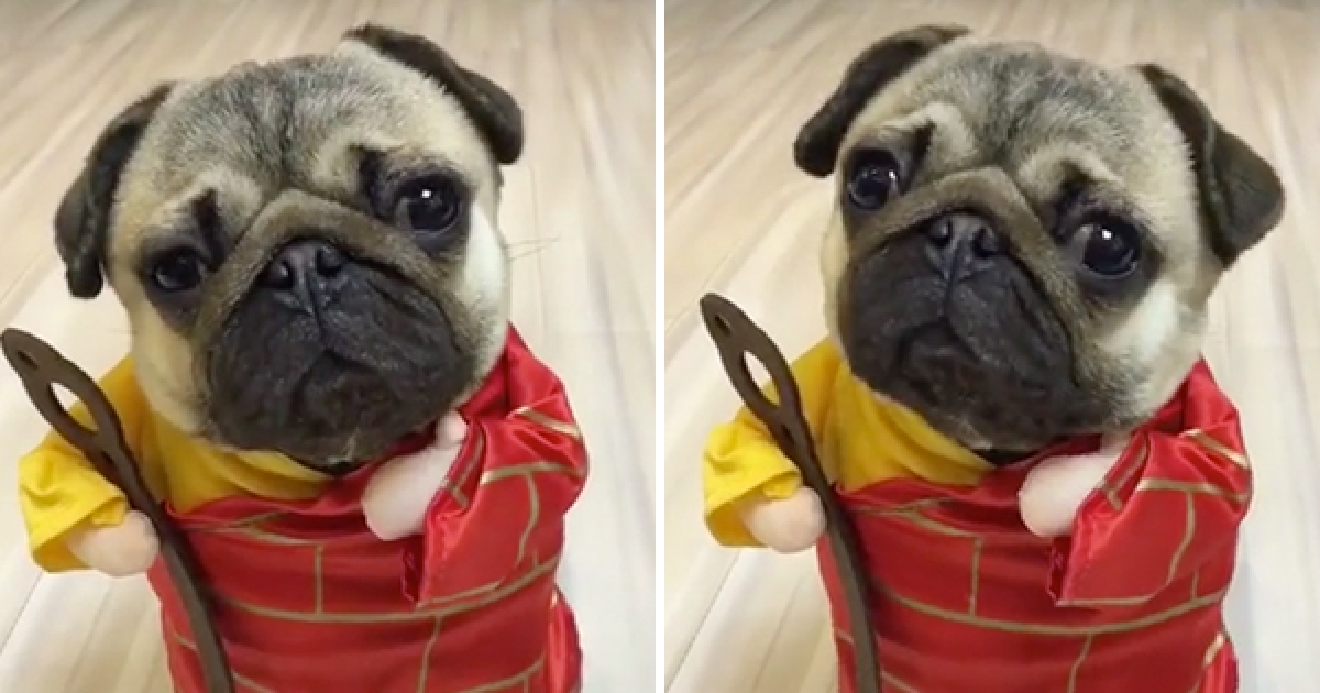 苦情臉巴哥穿「唐僧裝」零違和 網友笑喊:師傅請收我為徒!
