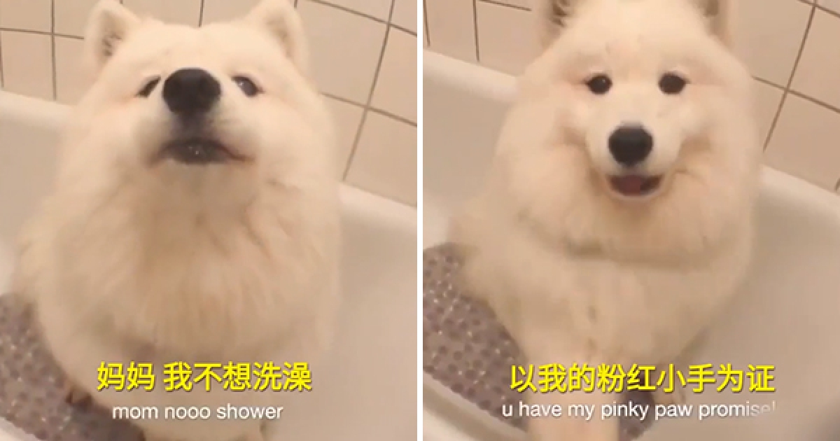 薩摩耶蹲浴缸「碎碎念」不想洗澡 牠委屈巴巴撒嬌:偶很乾淨啊~