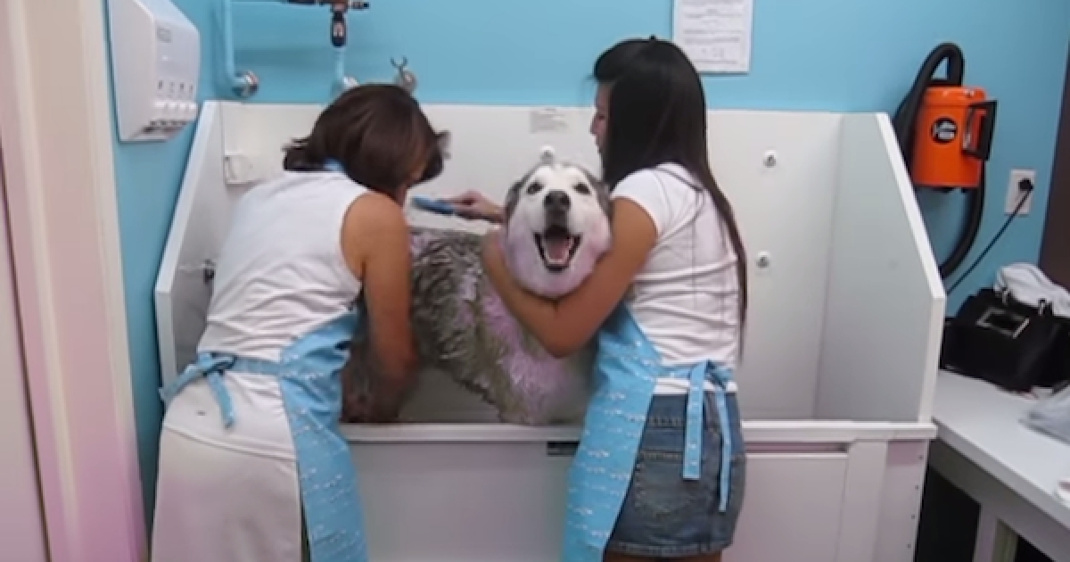 哈士奇洗澡「話匣子全開」跟美容師說話 最後還當自己家放聲高歌