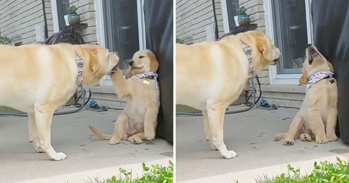 大拉拉被咬尾巴怒訓話 「屁孩小黃金」狂揮拳:我不聽我不聽~