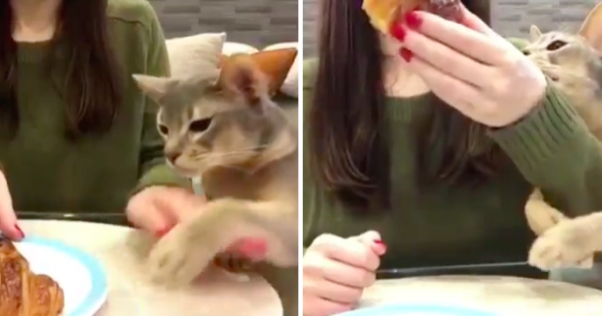 饞嘴貓咪為吃可頌拼命討好馬麻 黏手臂、倒桌上:只要讓我吃一口,做什麼都可以!