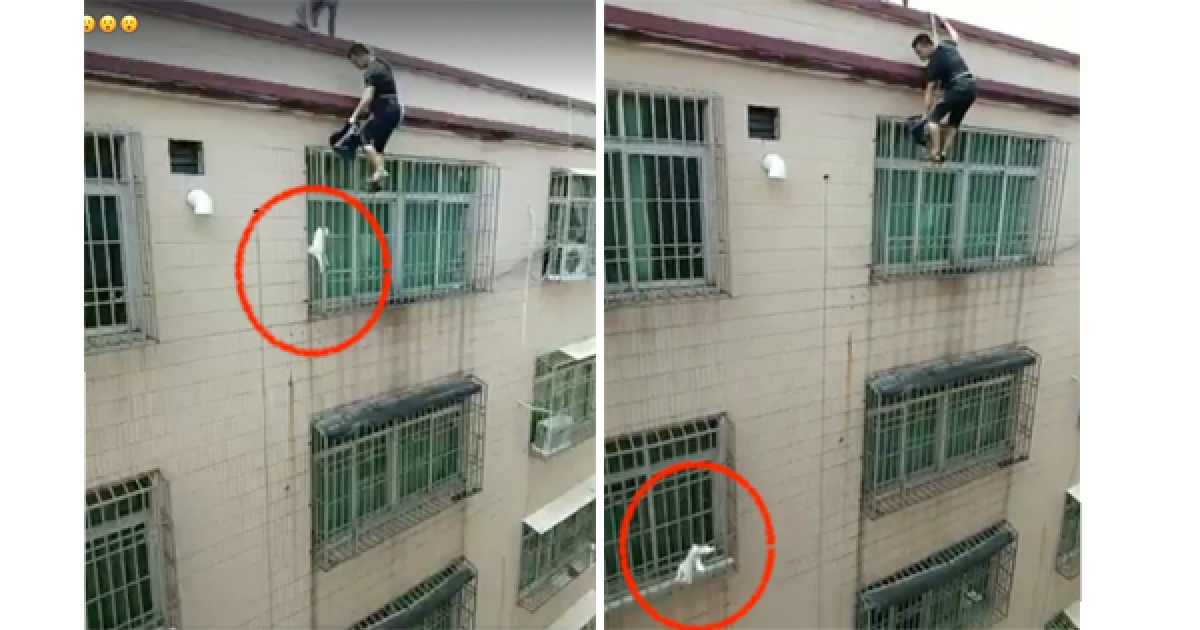 貓咪「卡在5樓窗外」他們垂吊救援 下一秒牠輕鬆跳下悠閒離開