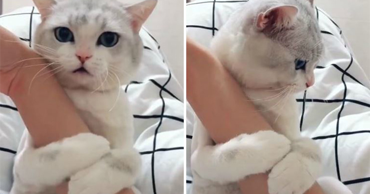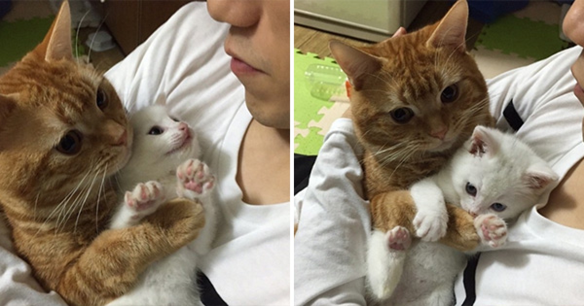 小白貓剛到新家「大黃貓馬上抱緊處理」 霸氣的一見鍾情之舉萌翻全網了