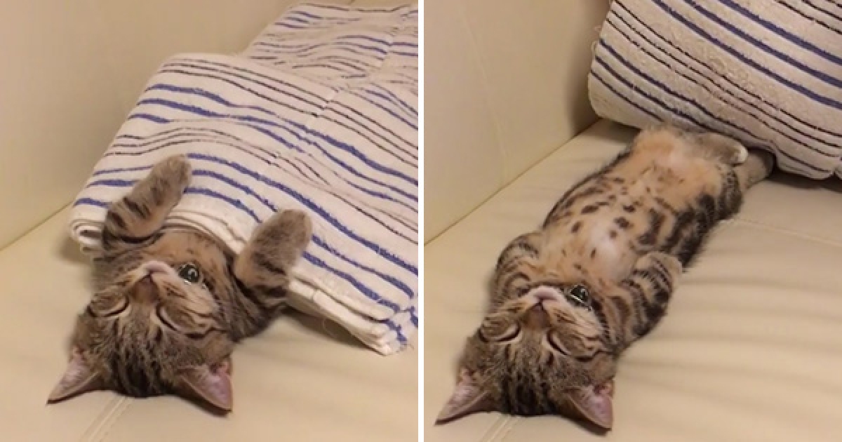 短腿小喵睡覺是「阿兵哥立正姿」 主人掀被還舒服到翹腳腳