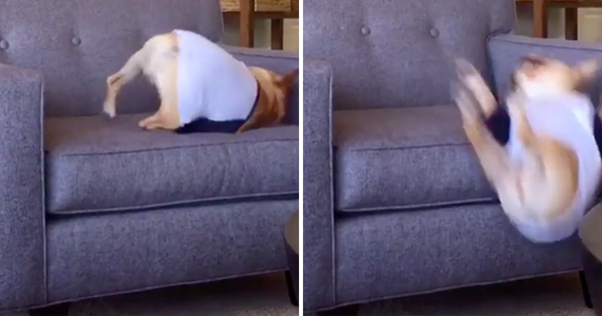 小法鬥在沙發上嗨過頭 下一秒開心到翻過去「屁股開花」