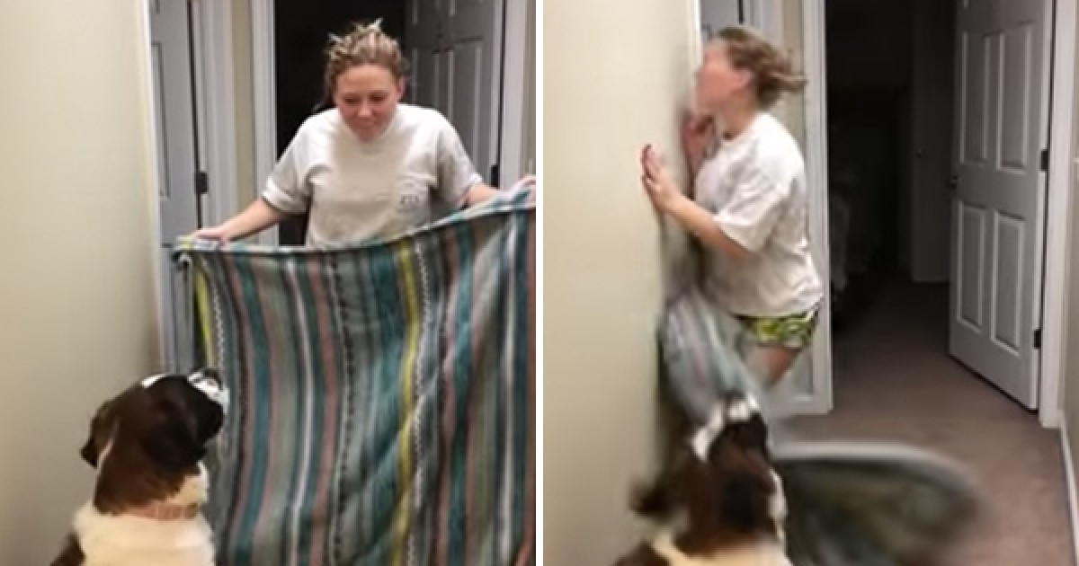 主人玩消失遊戲「落漆撞牆」 聖伯納驚嚇拔腿狂奔:救人哦~主人瘋啦