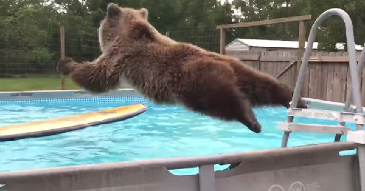 熊熊的「跳水瞬間」定格畫面超爆笑 撲通一聲泡進去:好爽~
