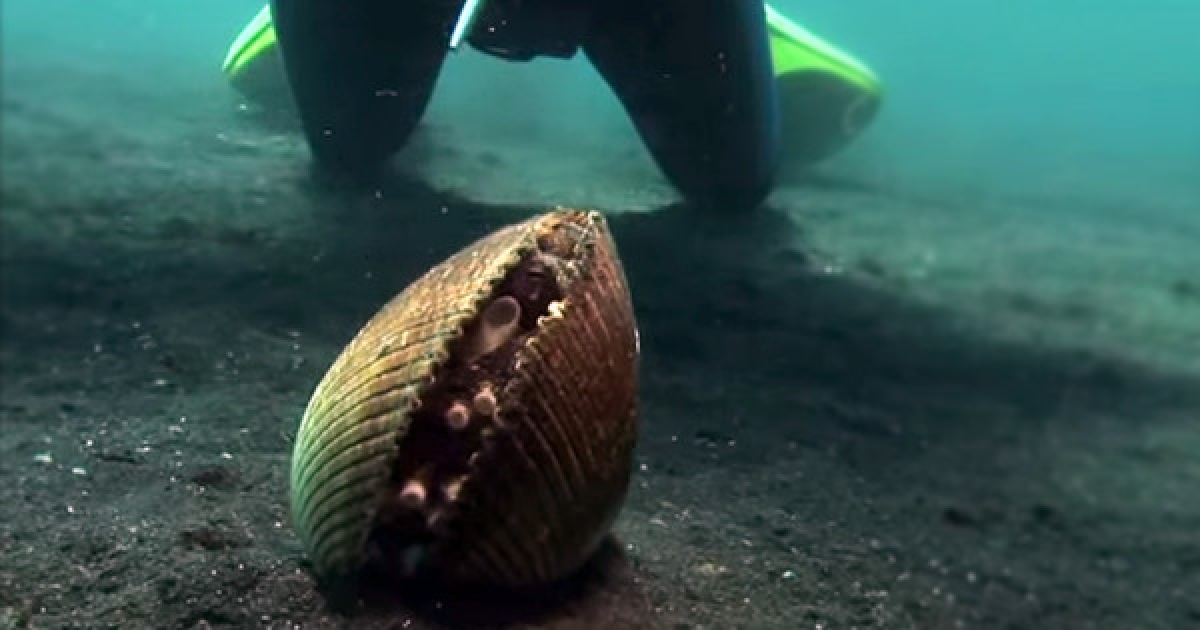 潛水員海中遇到特大號蛤蜊 一靠近竟然「長出腳」逃走了