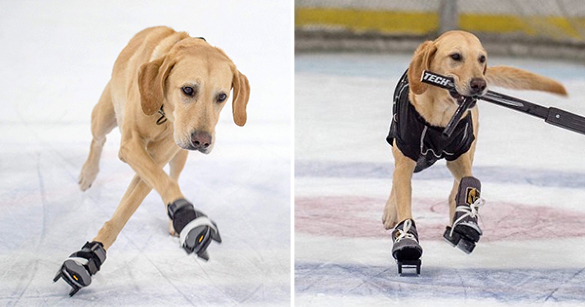 世界第一隻滑冰狗狗開溜! 優雅過彎還會打冰球