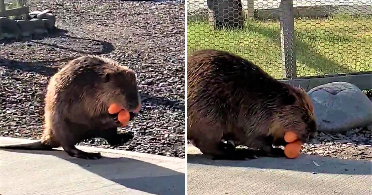 滿手紅蘿蔔!河狸媽「下巴努力夾住」 網笑噴:忘記帶購物袋的我