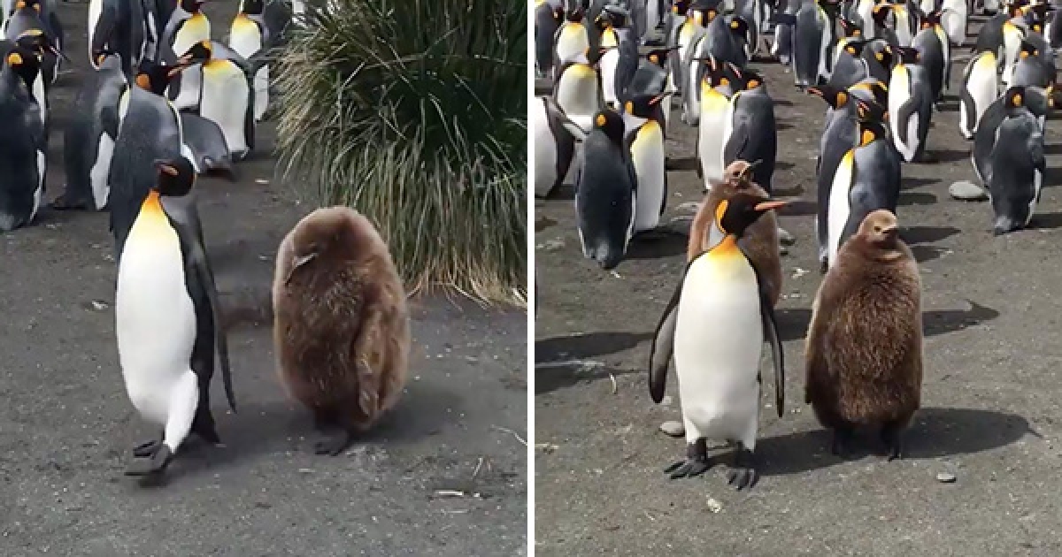 國王企鵝身後緊跟「巨型奇異果」 網萌笑:這隻制服忘了換季