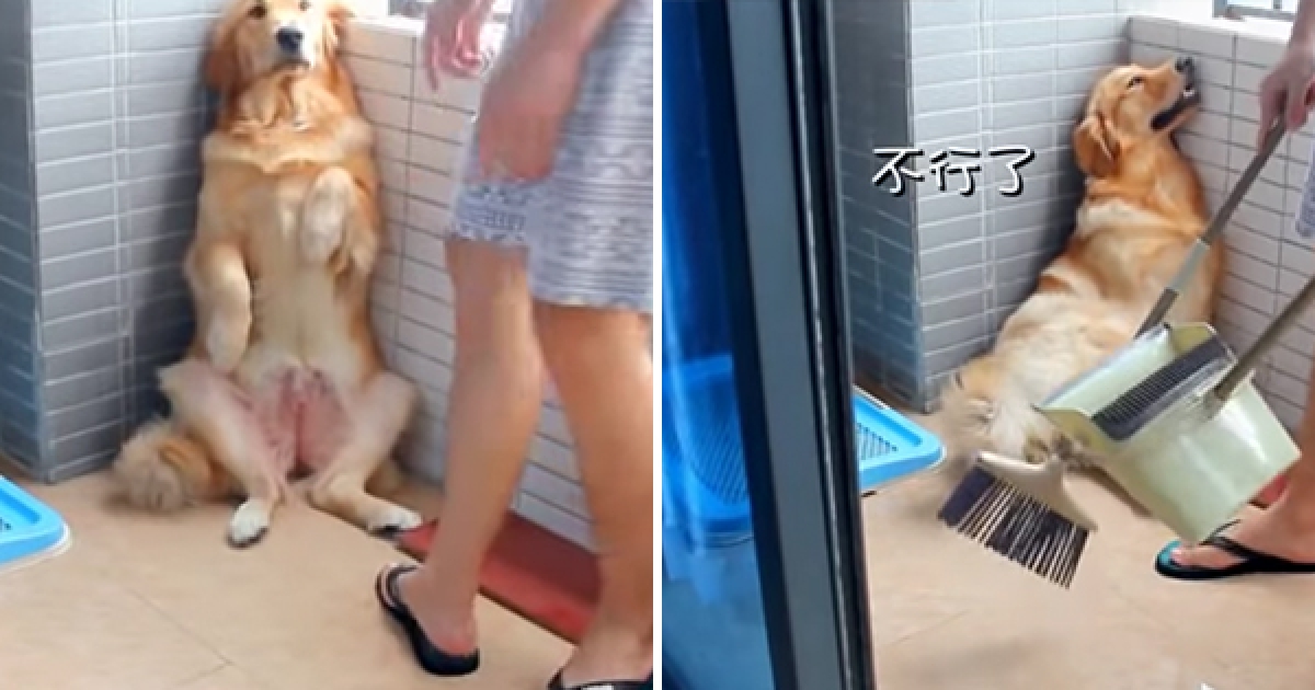 亂尿尿被罰站的金金求放過 主人不忍心秒原諒:你這狗…