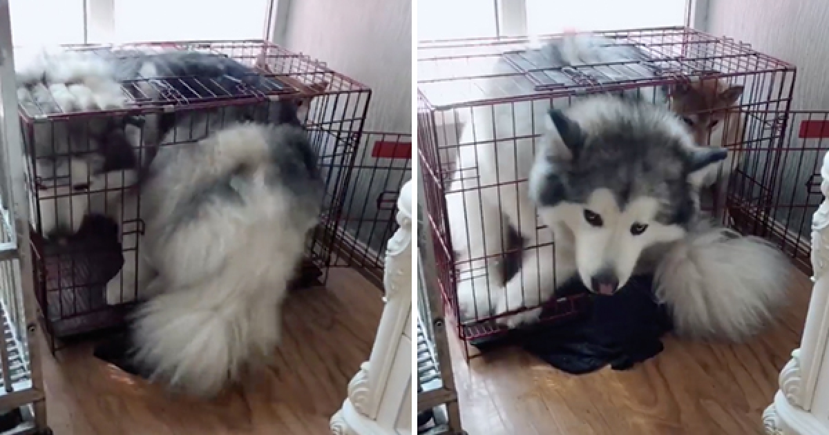 你幹嘛搶我的窩啊~ 巨嬰雪橇犬「肥屁屁硬塞」壓扁柴柴