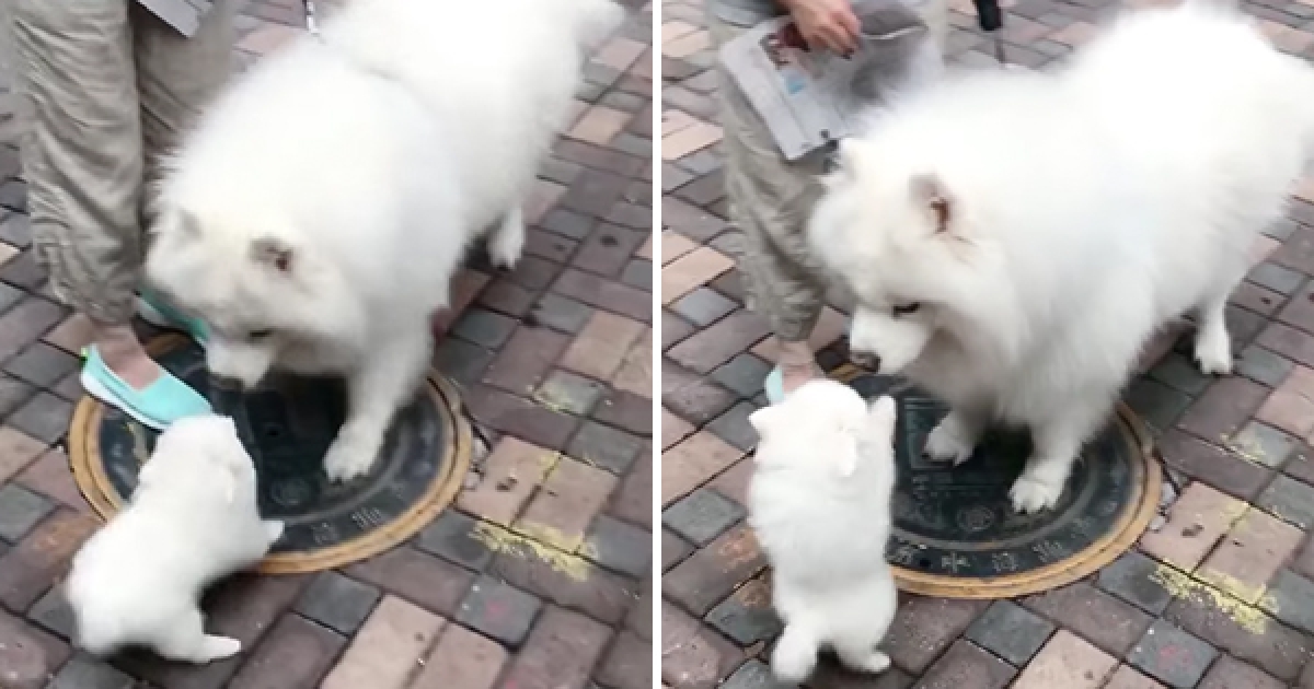 是白毛毛朋友! 小博美見薩摩耶「興奮到站起來」 最萌身高差可愛翻