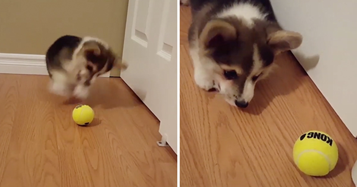 主人這怎麼玩? 小柯基初見網球「小短腿亂舞」 呆到沒發現全揮空