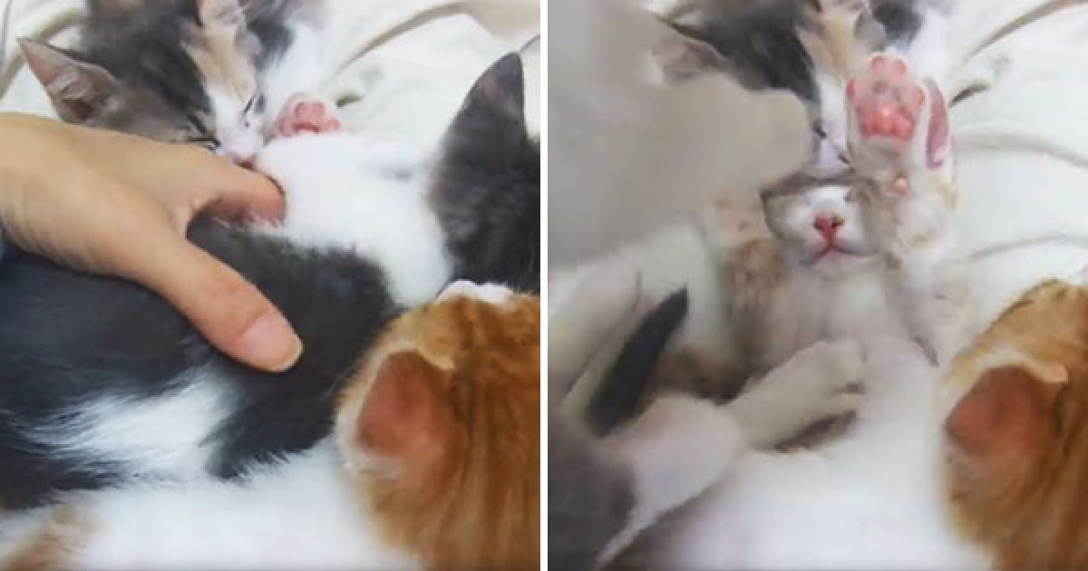 貓咪底下壓著爆笑驚喜 抱起來一看「下面那隻睡到四腳朝天」萌炸