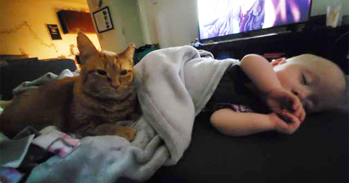 高冷喵星人「假裝不喜歡寶寶」 監視器抓包超甜畫面:偷偷溜去跟北鼻睡