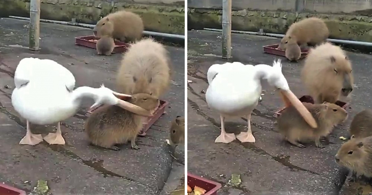 鵜鶘示範「各種夾法」畫面有夠鬧 水豚君一臉淡定:感謝你的全身按摩