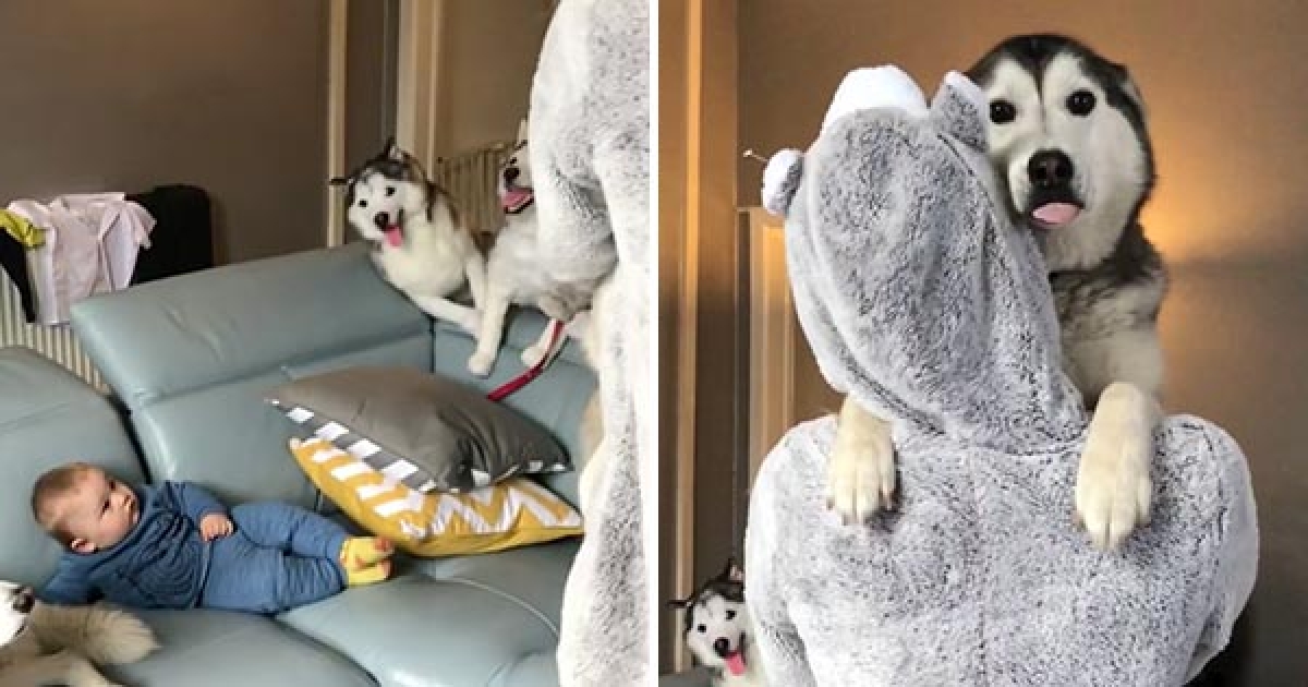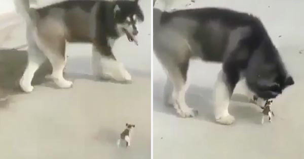 大個兒哈士奇當保姆好盡責 不停回頭看「迷你小奶喵」:跟得上嗎?
