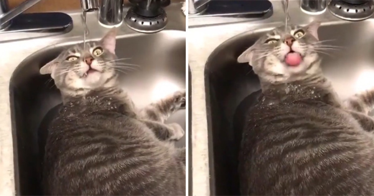 胖喵皇跩躺水槽「張口接水」 身體懶出新境界:這款自動供水挖尬意
