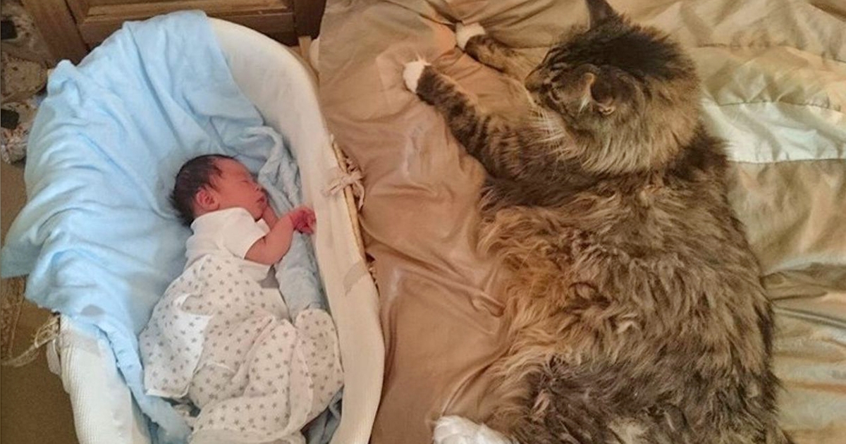 貓也能當保姆!超巨大緬因貓「守護小主人」 每天凝望:有我在安啦~