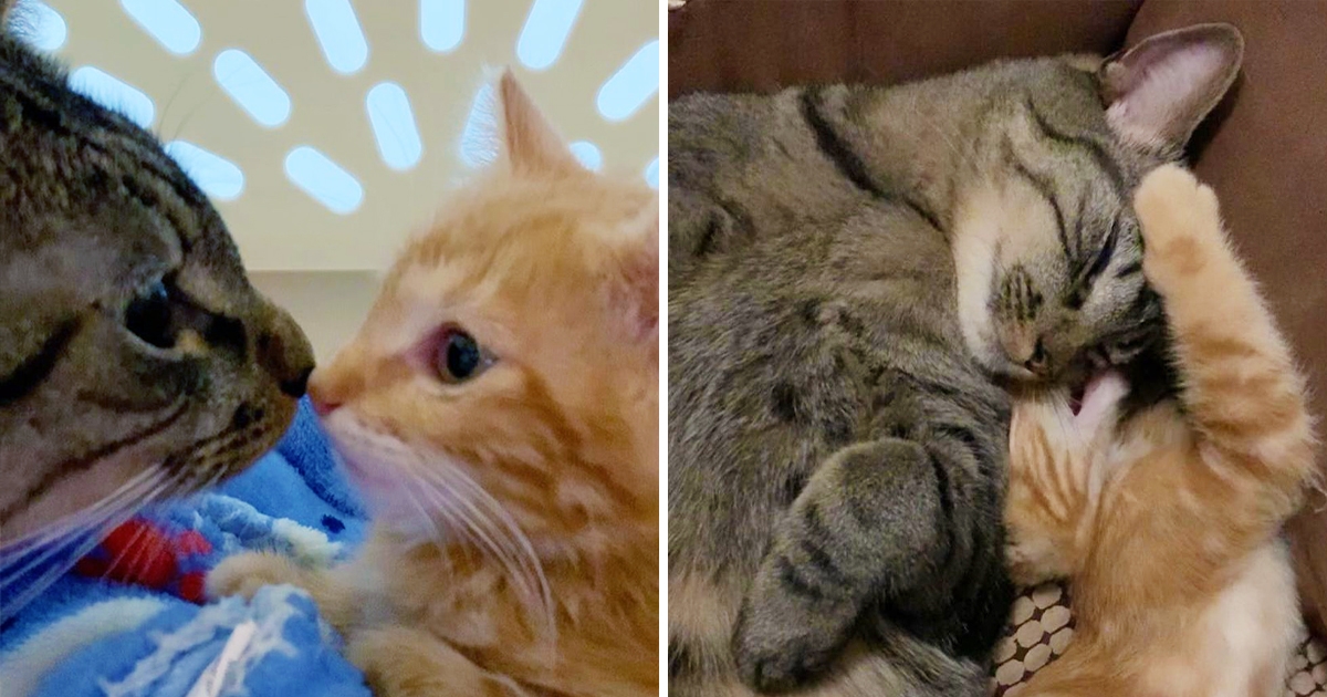 浪喵獲救後太膽小… 大貓獻上「愛的啾啾」融化牠的心:親一個就不怕了