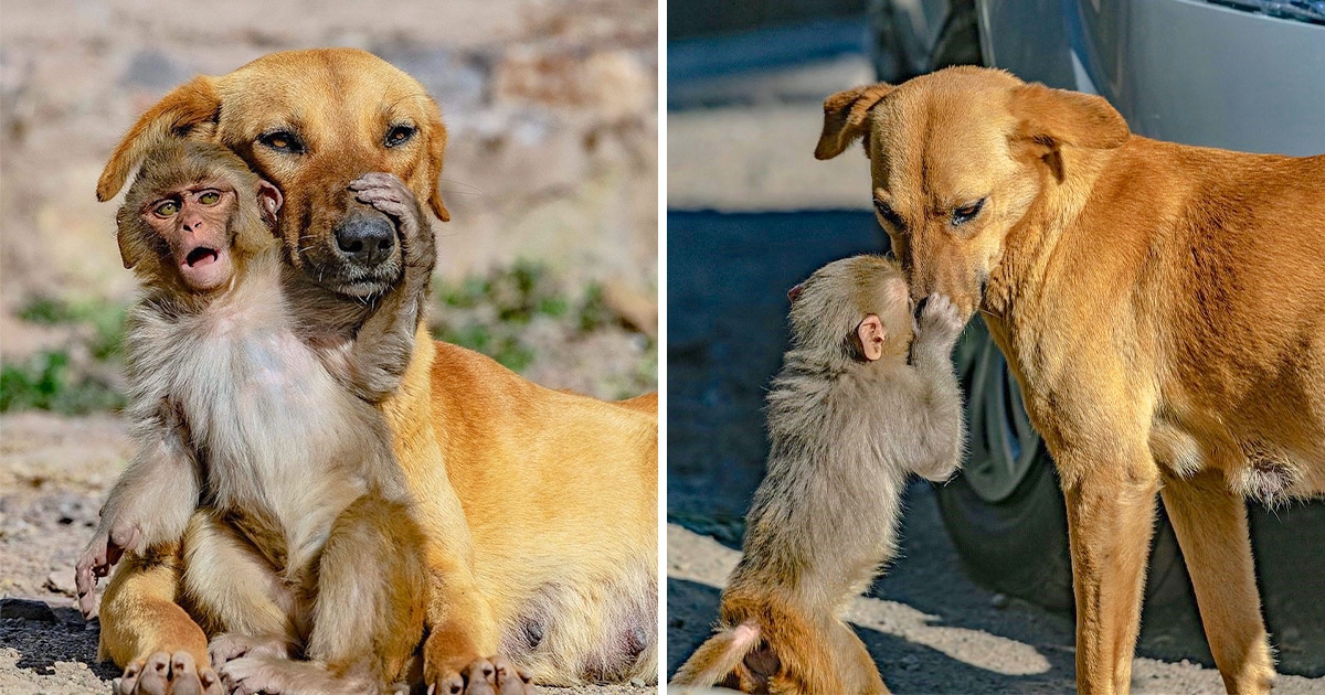 無私的愛! 狗媽看「孤兒小猴」竟溫柔收養 牠獻吻:妳就是我馬麻~