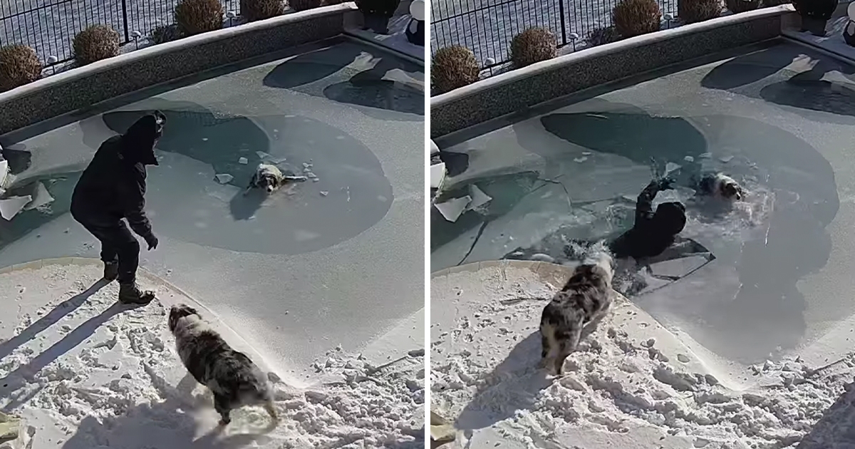 德州大雪! 愛犬失足掉「結冰游泳池」 主人「二話不說跟著跳」救汪:別怕,有把拔在!