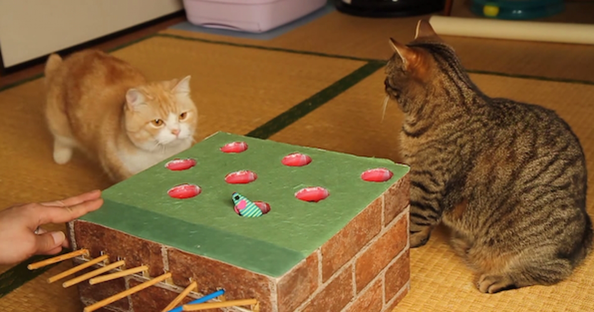 自製「打地鼠機」給貓咪玩 喵皇超賞臉用力戳腳腳連打