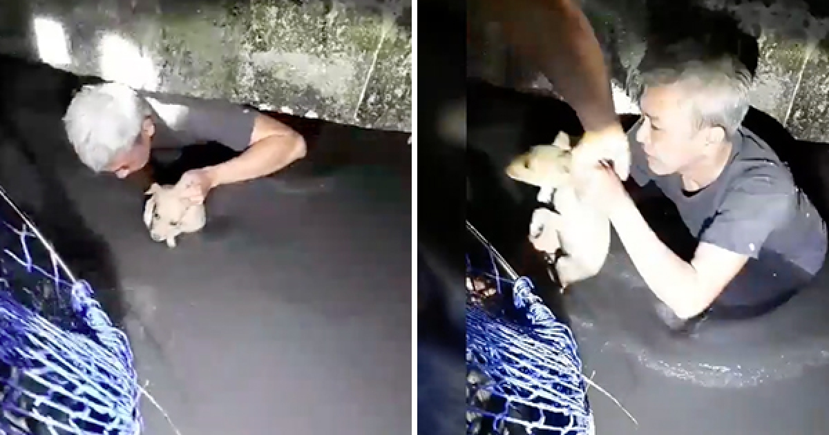 排水溝傳來幼犬嗚咽聲 志工「跪趴在爛泥堆裡」帥氣搶救