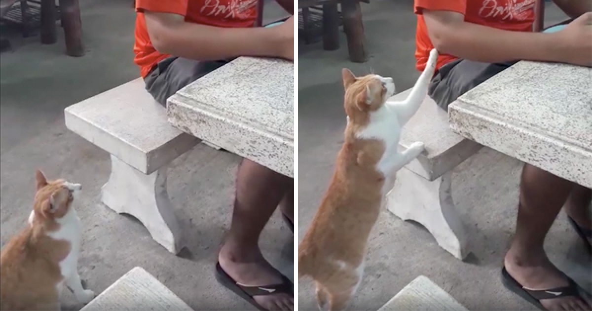 肚子餓餓還是要有禮貌 浪喵「爪子輕拍」討食:分我一點好嗎?