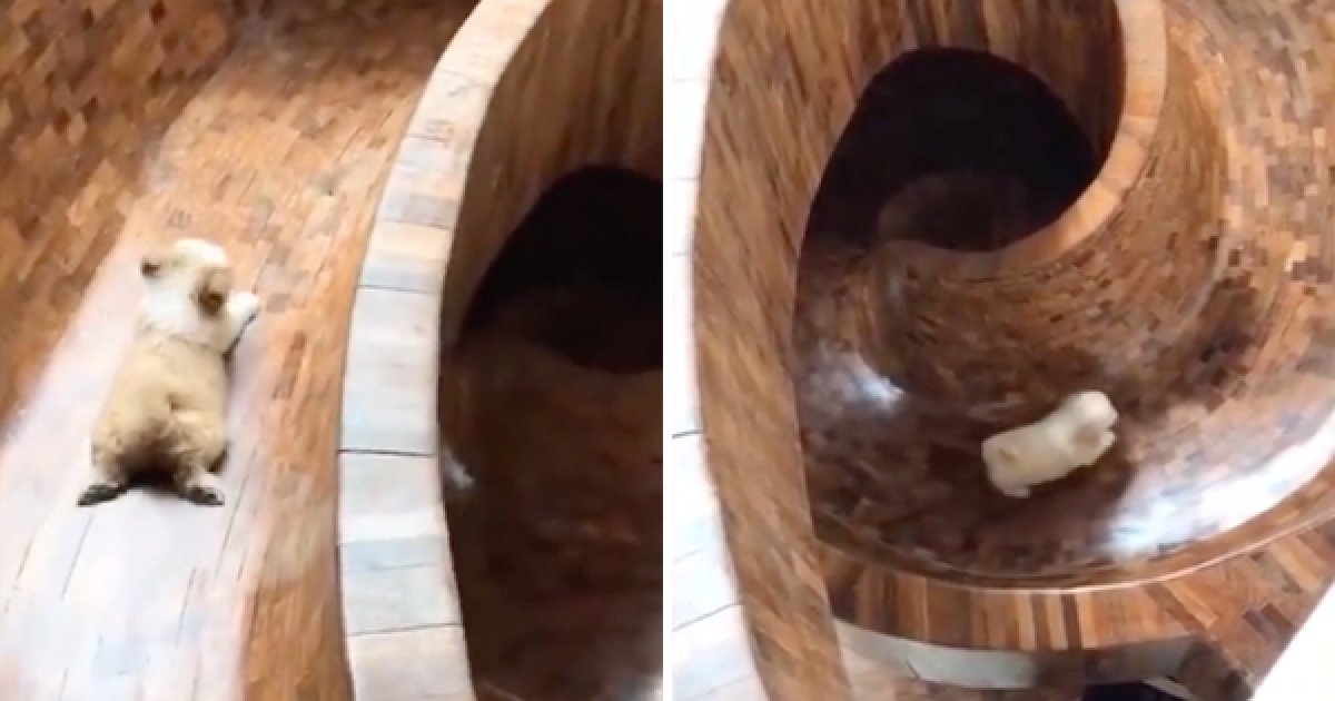 家裡有溜滑梯後「小白汪興奮狂玩」 滑到底又扭屁屁爬上來:再溜一次~