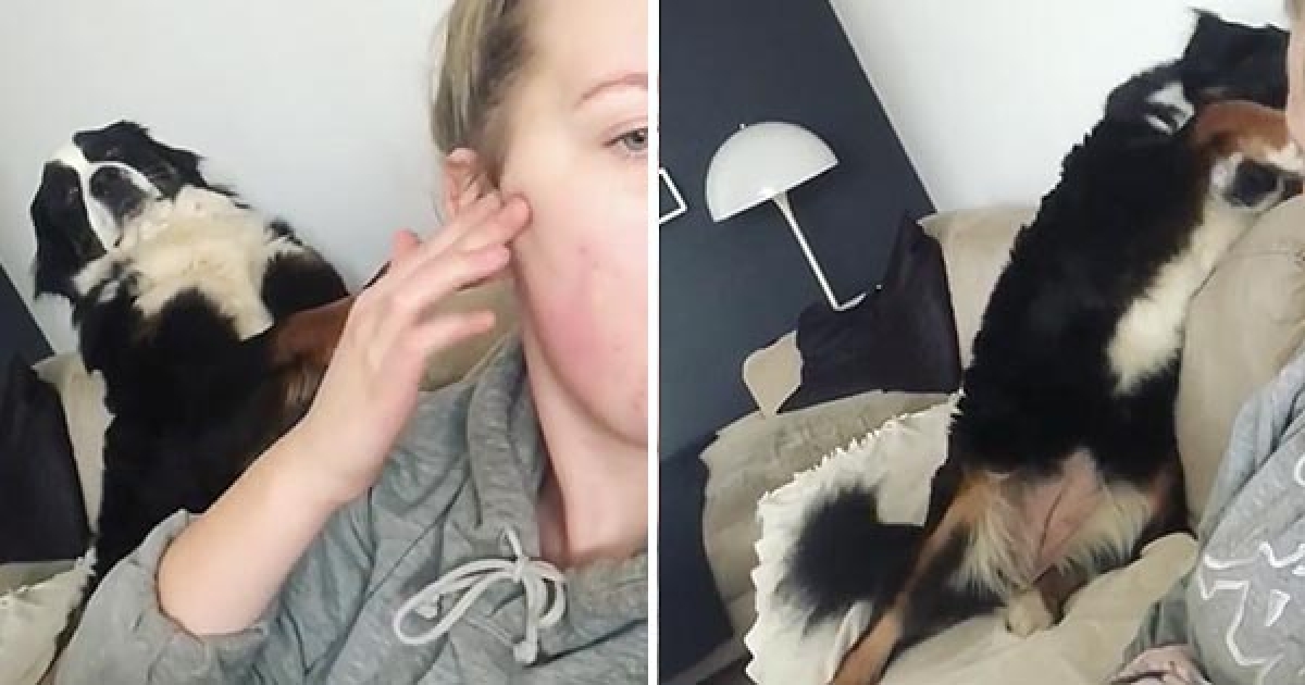 不小心打到主人的臉頰紅紅的 毛孩嚇呆摀臉道歉:原諒我好嗎…