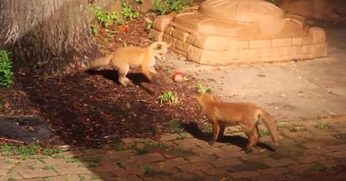 3隻小狐狸半夜在後院發現玩具 開心「變小狗狗」瘋玩:4球耶~