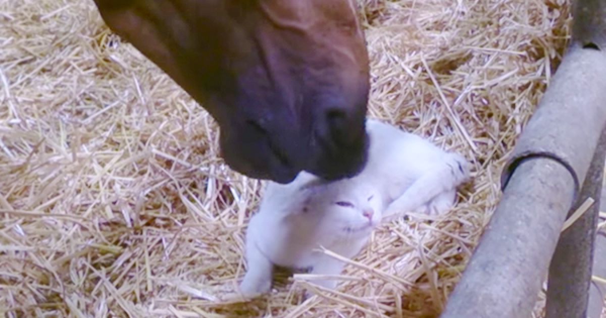 貓皇在馬面前一秒變萌寵 「被舔舔親親」不敢反抗太可愛