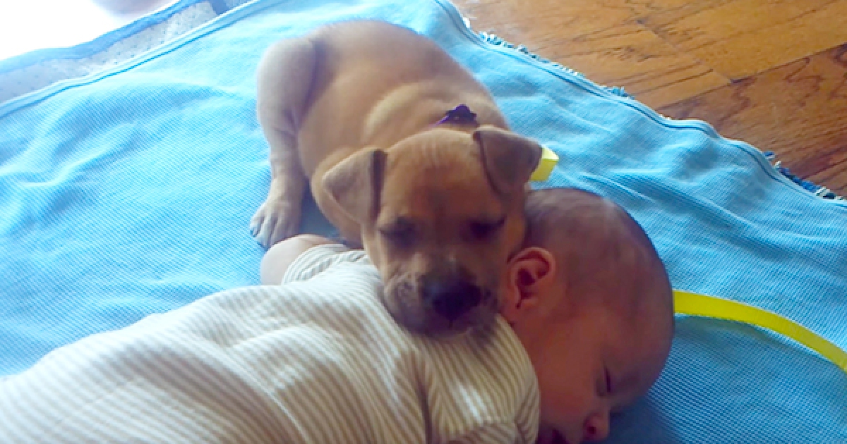 狗狗看小主人睡到超甜忍不住「度估」 實在撐不住:我們一起睡好了~